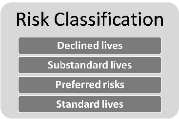 To usher equity, the underwriter engages in a process known as risk classification i.e. individual lives are categorised and assigned to different risk classes depending on the degree of risks they pose. There are four such risk classes.