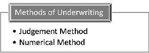 • Judgment method or numerical method of underwriting is widely used for underwriting insurance proposals.
